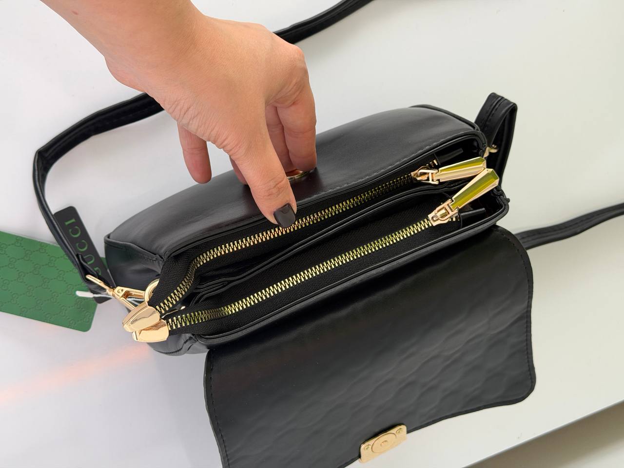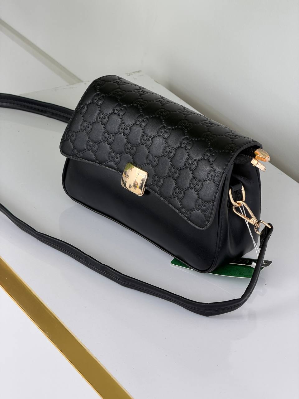 کیف دوشی طرح Gucci مشکی با طراحی لوکس و مینیمال، انتخابی ایدهآل برای خانمهایی است که به دنبال یک کیف شیک، باکیفیت و مناسب استفاده روزمره و مهمانی هستند. این کیف از چرم مصنوعی مرغوب ساخته شده و قسمت رویه آن با طرح برجسته GG جلوهای کاملاً شیک و متفاوت به کیف بخشیده است.